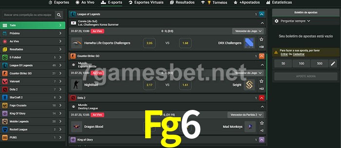 A aposta Fg6 oferece aos jogadores a experiência mais conveniente de apostas em eSports!
